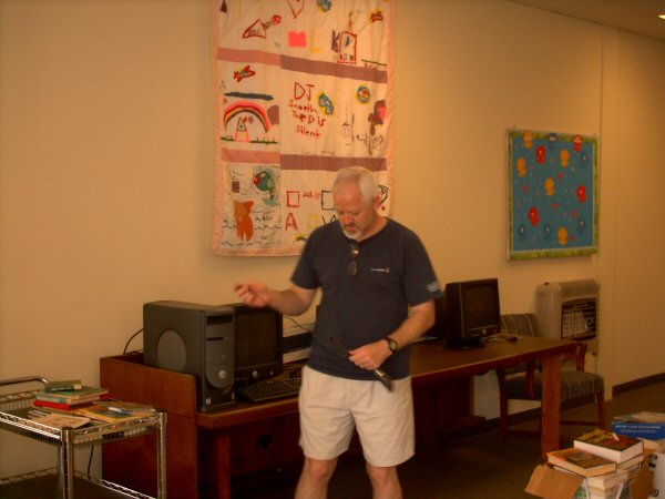 volunteer Craig Webb installs computers